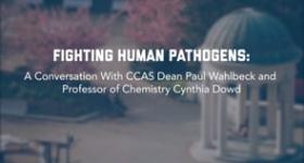 In a video conversation with CCAS Dean Wahlbeck, Chemistry's Cindy Dowd discusses her work to fight disease through the development of inhibitors to human pathogens.