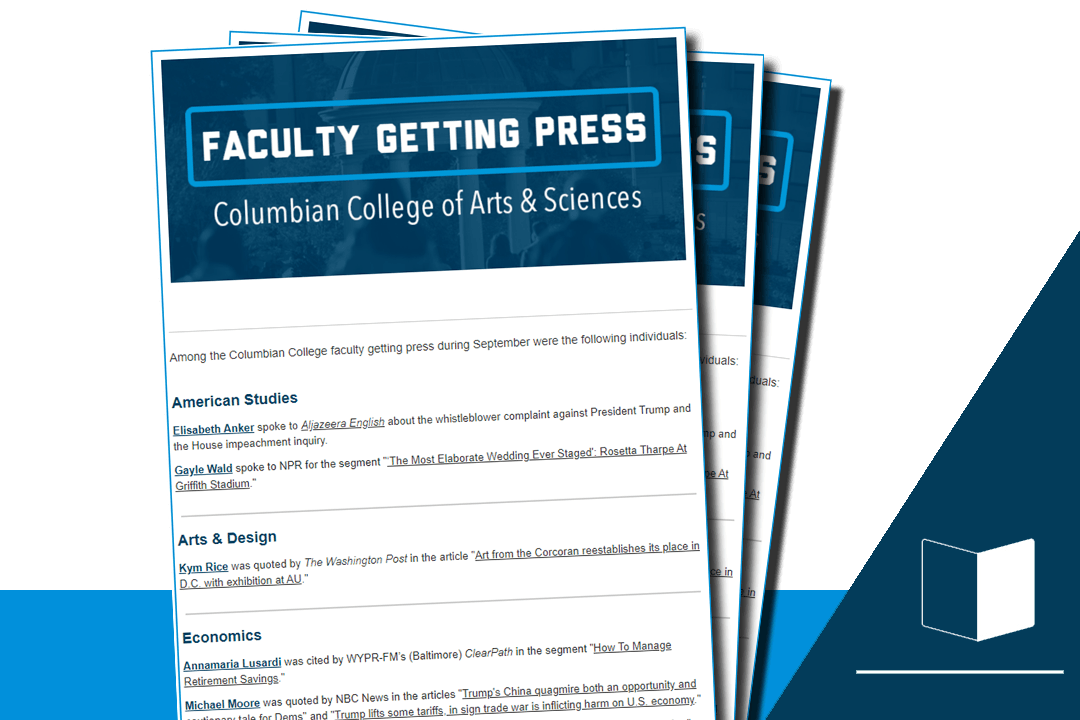 Columbian College faculty, students and alumni are frequently featured in major press outlets, through expert interviews, reviews and authored books, papers and articles. Getting Press, published monthly, includes individuals (listed by department) who have made headlines.