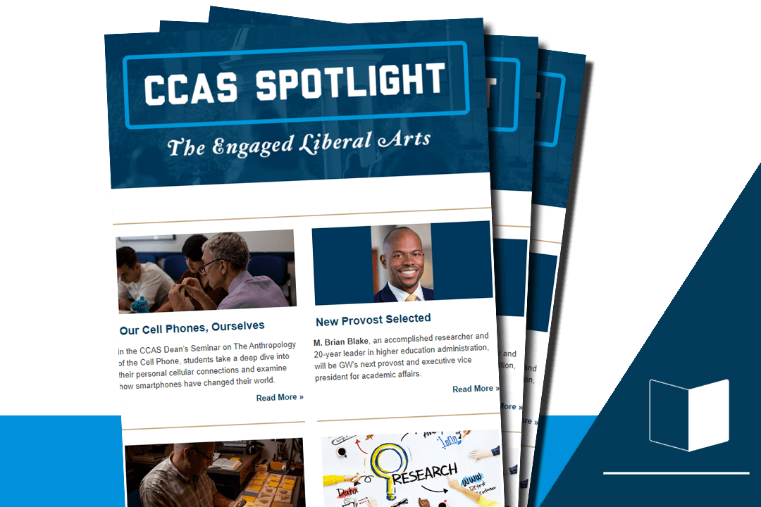 As our flagship monthly digital publication, CCAS Spotlight contains featured stories on learning, research, new initiatives and special announcements, as well as an events listing and a "Noteworthy" section recognizing our faculty, students and alumni.