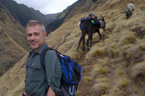 Gustavo Hormiga hiking in the native forest of Alejandro Selkirk Island.
