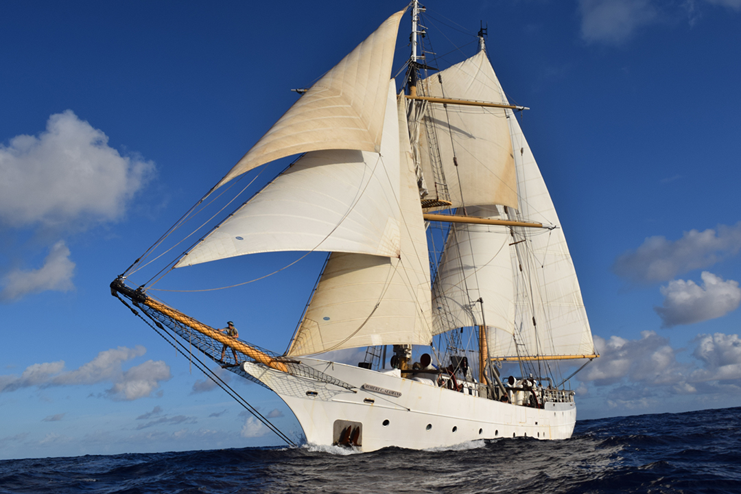 The Robert C. Seamans, a 135-foot Brigantine ship on the South Pacific Ocean. (Photo courtesy: Turi Abbott)
